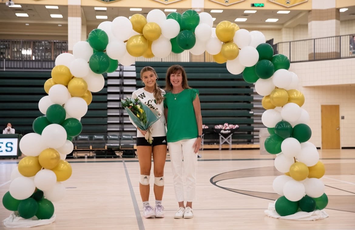(l to r) Senior Kelsey Brown and her mom celebrated the varsity volleyball seniors who have contributed to the team’s success over the past four years. Photo Courtesy: Tiffany Godfrey