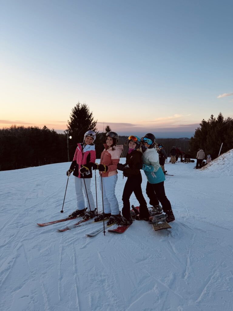 (l to r) Sophomores Caroline Pafford, Jordan Hubbell, Kyleigh Gentner, and Melloy Madray loved hitting the slopes and spending time together on the MLK weekend ski retreat.